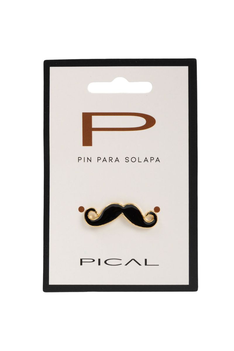 El pin Pical dorado presenta un diseño de bigote rizado, realzado con un elegante contraste entre el esmalte negro brillante y el delineado dorado que enmarca la forma. Esta combinación bicolor le da una definición nítida y una sofisticación moderna a este accesorio temático. Es la elección perfecta para quienes buscan un toque de humor con una ejecución pulcra y formal